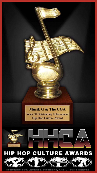 Musik G and The Underground Army (UGA) are recipients of a Hip Hop Culture Award for Years of Outstanding Achievement. Thank you HHCA for recognizing our efforts in keeping traditional Hip Hop Culture Alive. We will continue on because as we have always stated “ The Underground Can’t Be Stopped!” (Be sure to checkout the project we put out with the same name!) available on Amazon.com